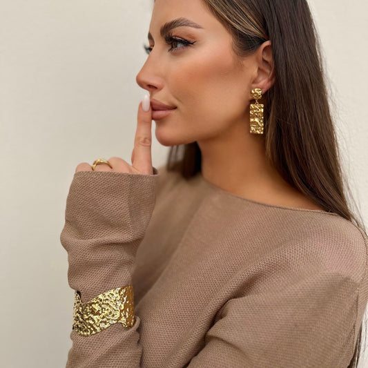 These earrings are tres chic. The dangling design adds the perfect touch of movement. They're lightweight and comfortable and really elevate any outfit. Perfect for both special occasions and adding a bit of glam to an everyday look. Very happy with my purchase!